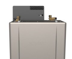 Both new EZ models have their hot- and cold- water connections located on top of the unit — not the bottom, like most tankless heaters. This positioning allows the flexible water lines used by the previous tank heater to be quickly and easily reconnected to the new unit.